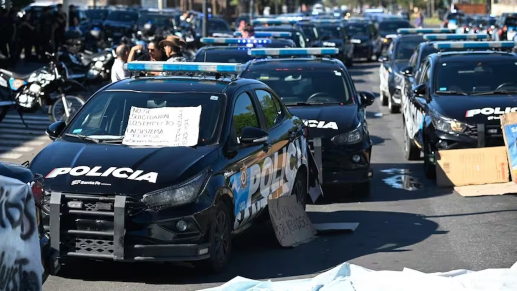 Agentes de la Policía de Santa Fe y del Servicio Penitenciario se manifestaron en la Casa de Gobierno provincial en reclamo por mejoras salariales y mejoras en las condiciones de trabajo, al tiempo que el ministro de Justicia y Seguridad, Pablo Cococcioni, anunció que 20 efectivos serán pasados a disponibilidad.