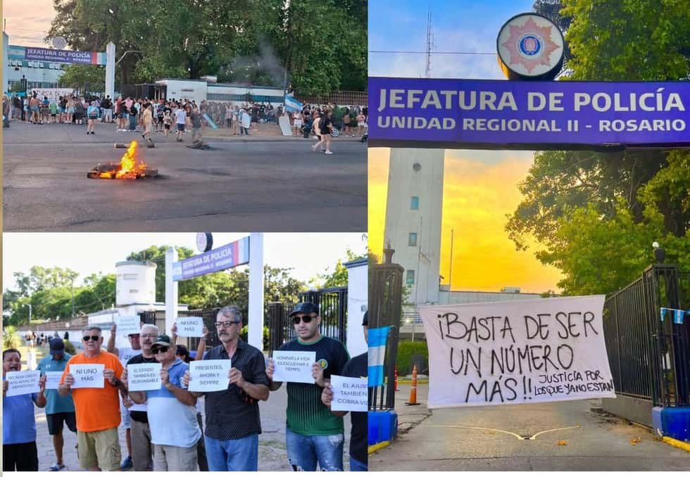 A su vez, los policías también se manifestaron durante la mañana de este martes frente a la Jefatura de la Unidad Regional II de Rosario, donde hubo quema de cubiertas sobre la avenida Ovidio Lagos.