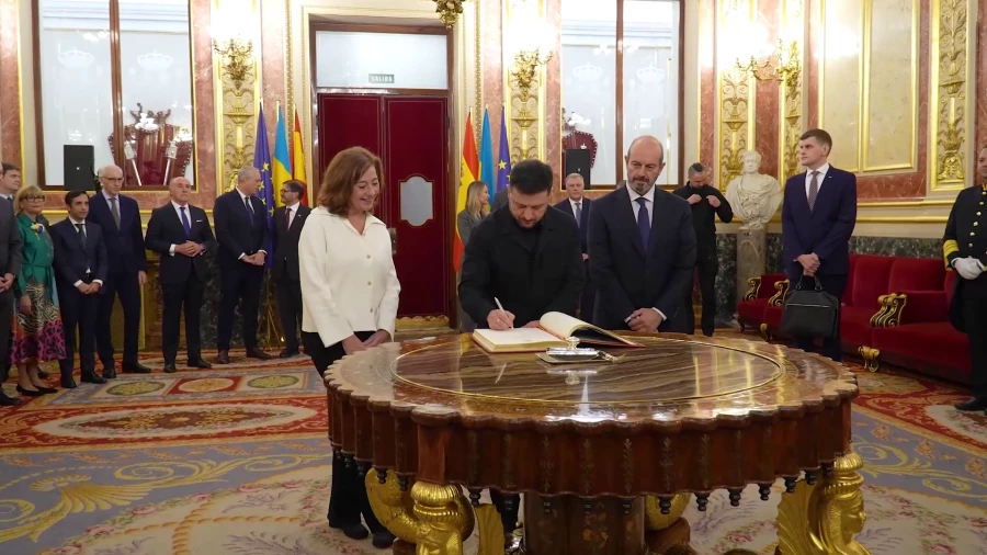 La visita de Zelenski al Congreso fue el primer acto oficial de su viaje a Madrid, donde tiene previsto reuniones con el rey Felipe VI, así como con el jefe del Ejecutivo, Pedro Sánchez, y con representantes de la industria de defensa española.