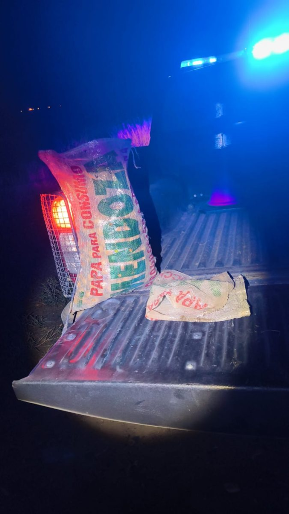 Las intervenciones continuaron en el mismo lugar el lunes. Por la noche, los efectivos constataron la presencia de otra bolsa que contenía 50 kilos de nueces. En tanto, durante la tarde de esa jornada, personal de motoristas de la UEP, que realizaba controles en calle Los Cuatro, detectó a varios hombres que salían del interior de la finca con bolsas sobre sus hombros. Tras una breve persecución, los uniformados lograron recuperar tres bolsas con nueces, con un peso total de 120 kilos.