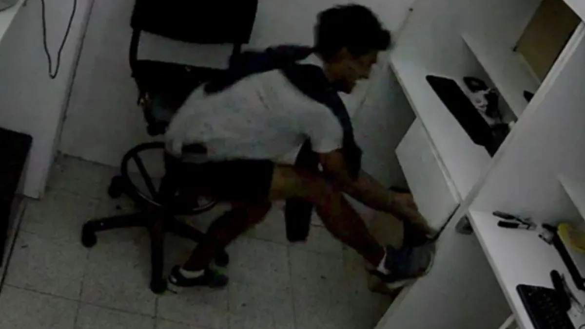 En este hecho, el delincuente entró a cara descubierta por un ventanal, y en el video se ve cómo abre una caja y se lleva $200.000 y un celular.