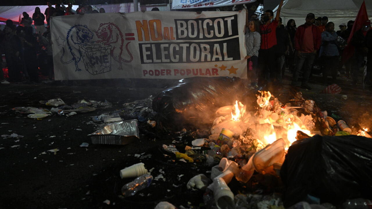 Simpatizantes del partido gobernante Libertad y Refundación (LIBRE) queman basura durante una protesta para denunciar fraude electoral en las últimas elecciones en Tegucigalpa el 15 de diciembre de 2025.AFP